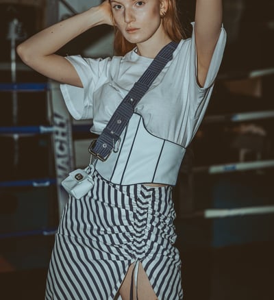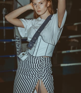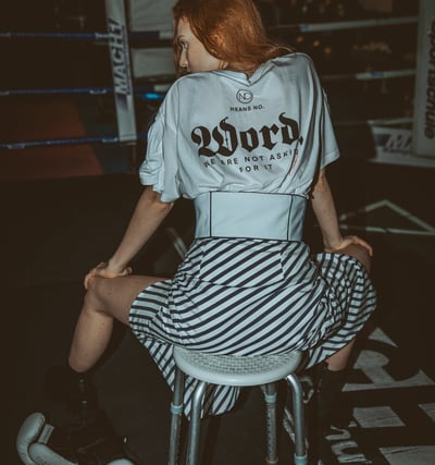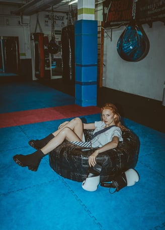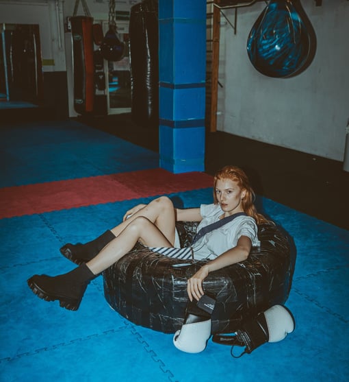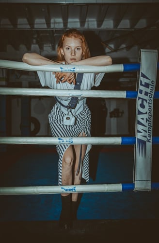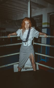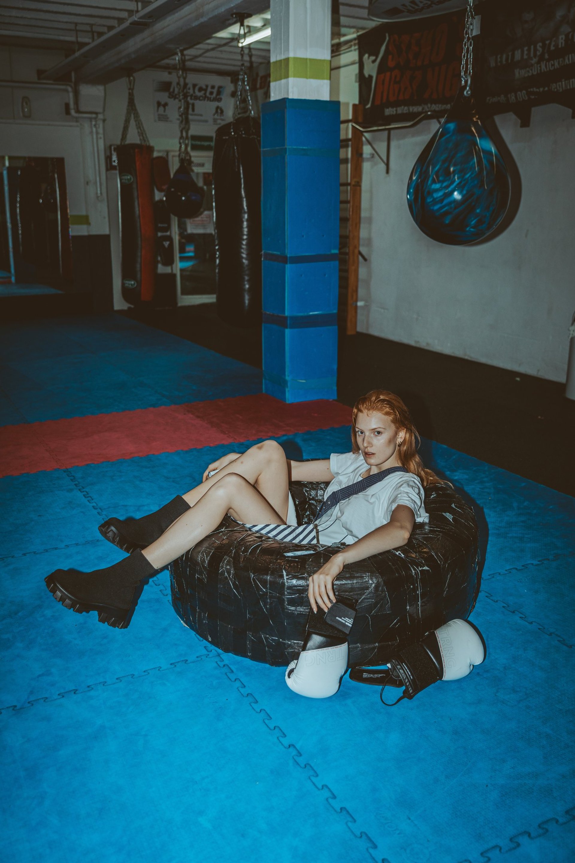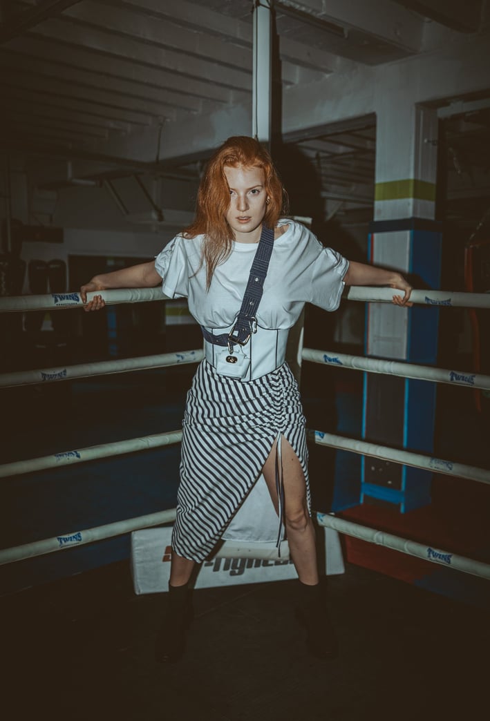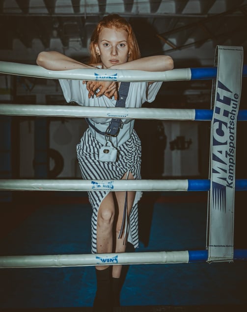 To visually represent the inner struggle and resilience following such trauma, the outfit was photographed in a boxing ring. This setting symbolizes the fight with oneself and the journey toward healing and empowerment.